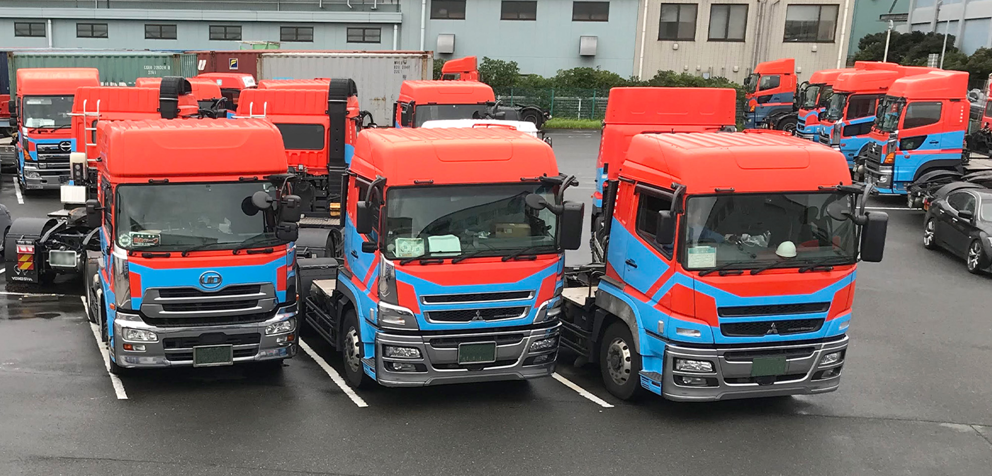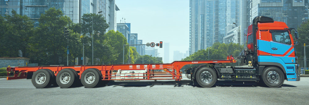 3軸シャーシを使⽤することにより、20フィートはコンテナ⾃重を含んで24トンまで、40フィートは30トンまで陸上運送できます。
